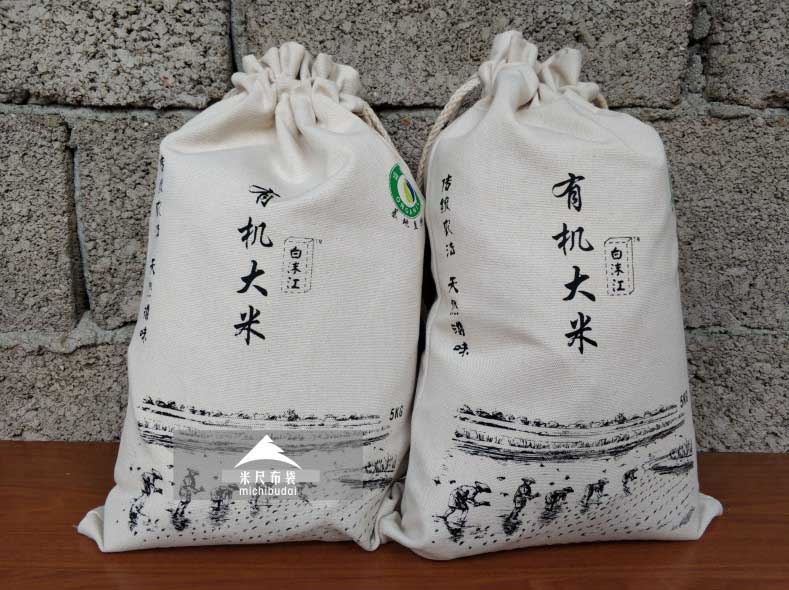 有機大米袋是采用滌棉材質的一種高端大米袋,滌棉帆布袋是有機農業常用的包裝袋材質,袋子采用束口收納式。