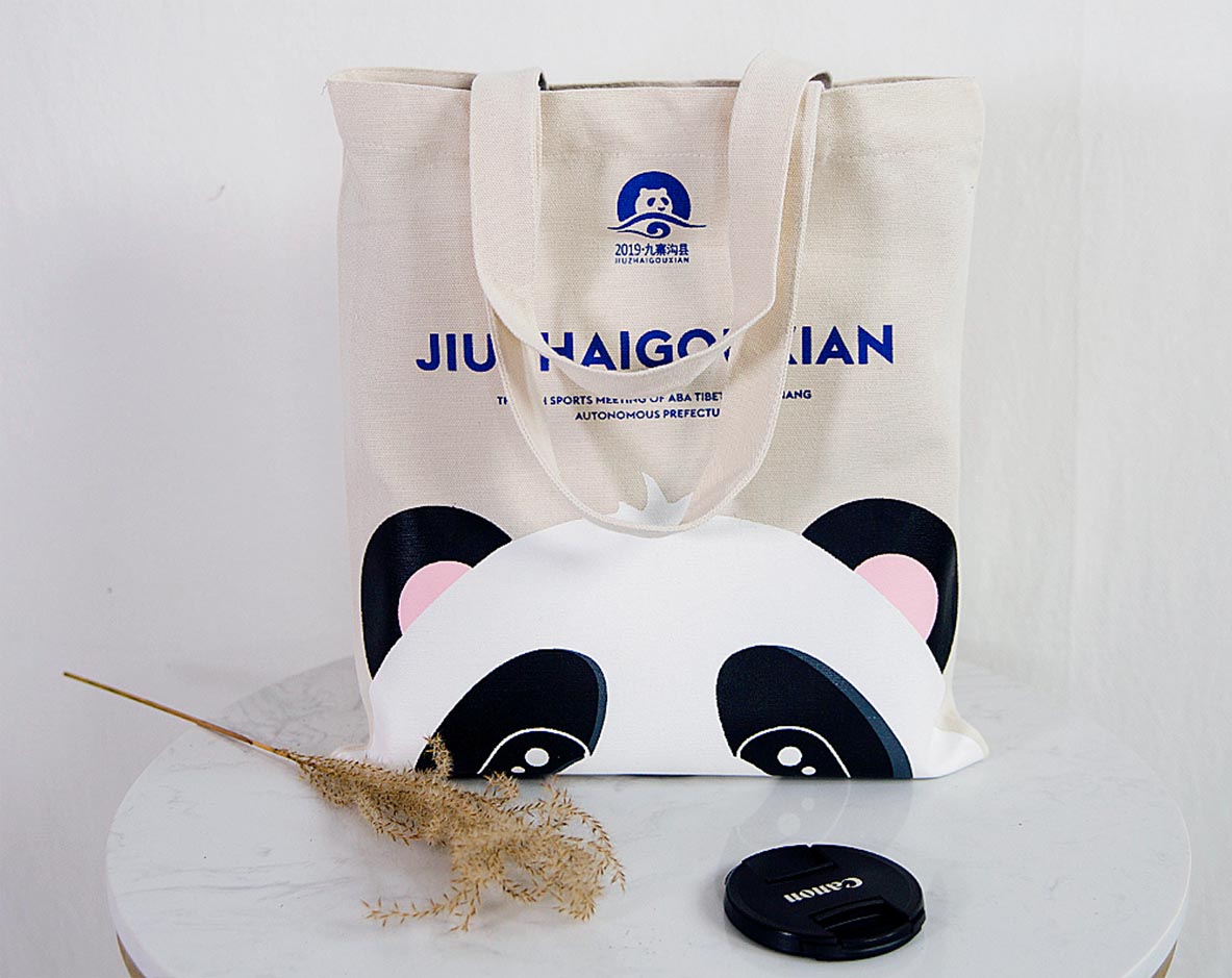 九寨溝文創帆布袋定做是由成都米尺帆布袋廠家定制生產,布料采用12安帆布制作,做工精湛,結實耐用;印刷工藝為絲網印刷工藝,顏料采用環保膠漿材質,美觀時尚,在使用的過程中能起到很好的品牌宣傳效果。